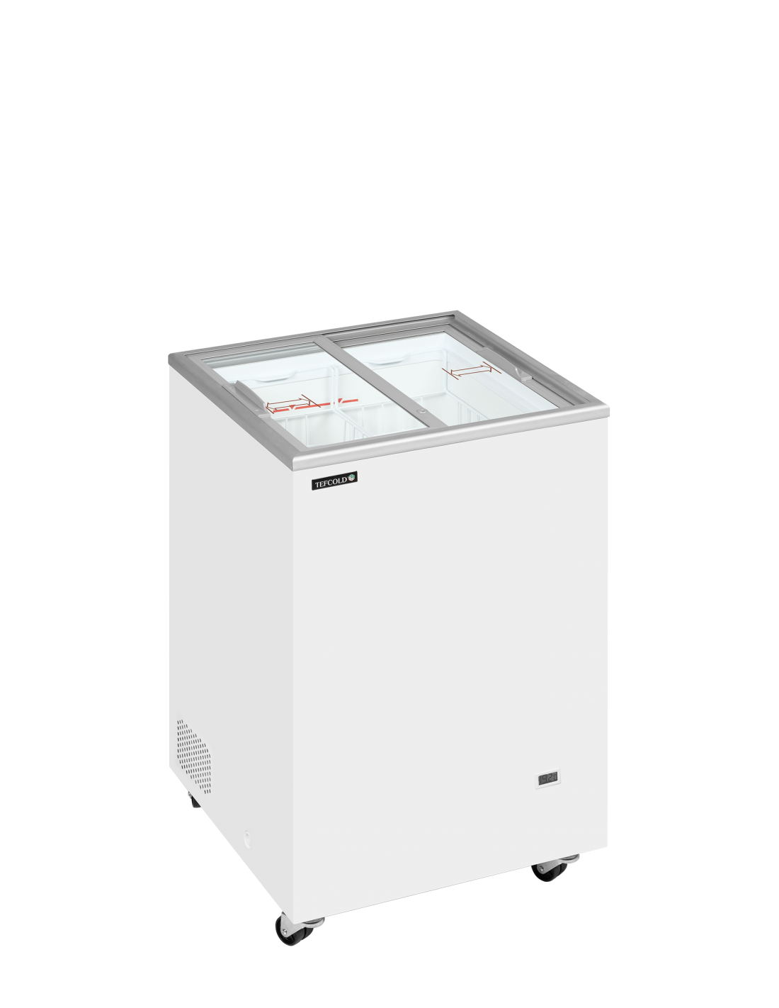 À l’intérieur, un jeu complet de paniers métalliques blancs est fourni pour organiser facilement glaces, pots, bacs ou bâtonnets glacés. L’éclairage LED met en valeur les produits et améliore l’expérience d’achat, même dans les environnements faiblement éclairés.