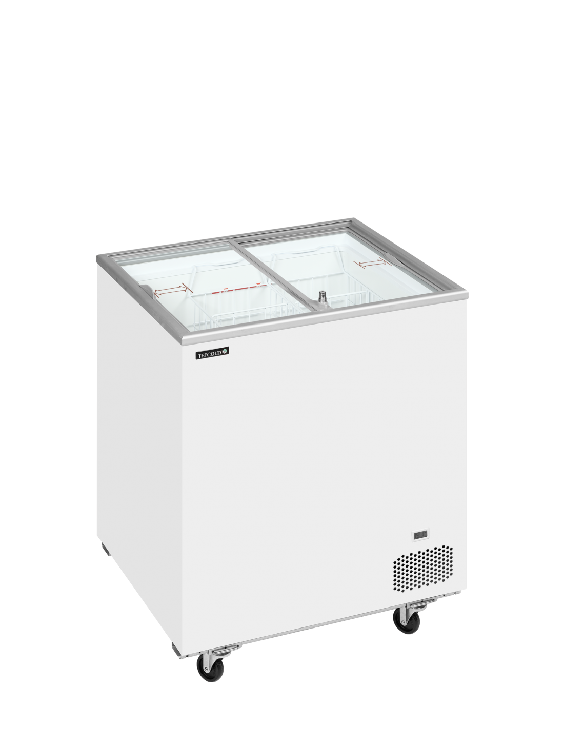 À l’intérieur, un jeu complet de paniers métalliques blancs est fourni pour organiser facilement glaces, pots, bacs ou bâtonnets glacés. L’éclairage LED met en valeur les produits et améliore l’expérience d’achat, même dans les environnements faiblement éclairés.