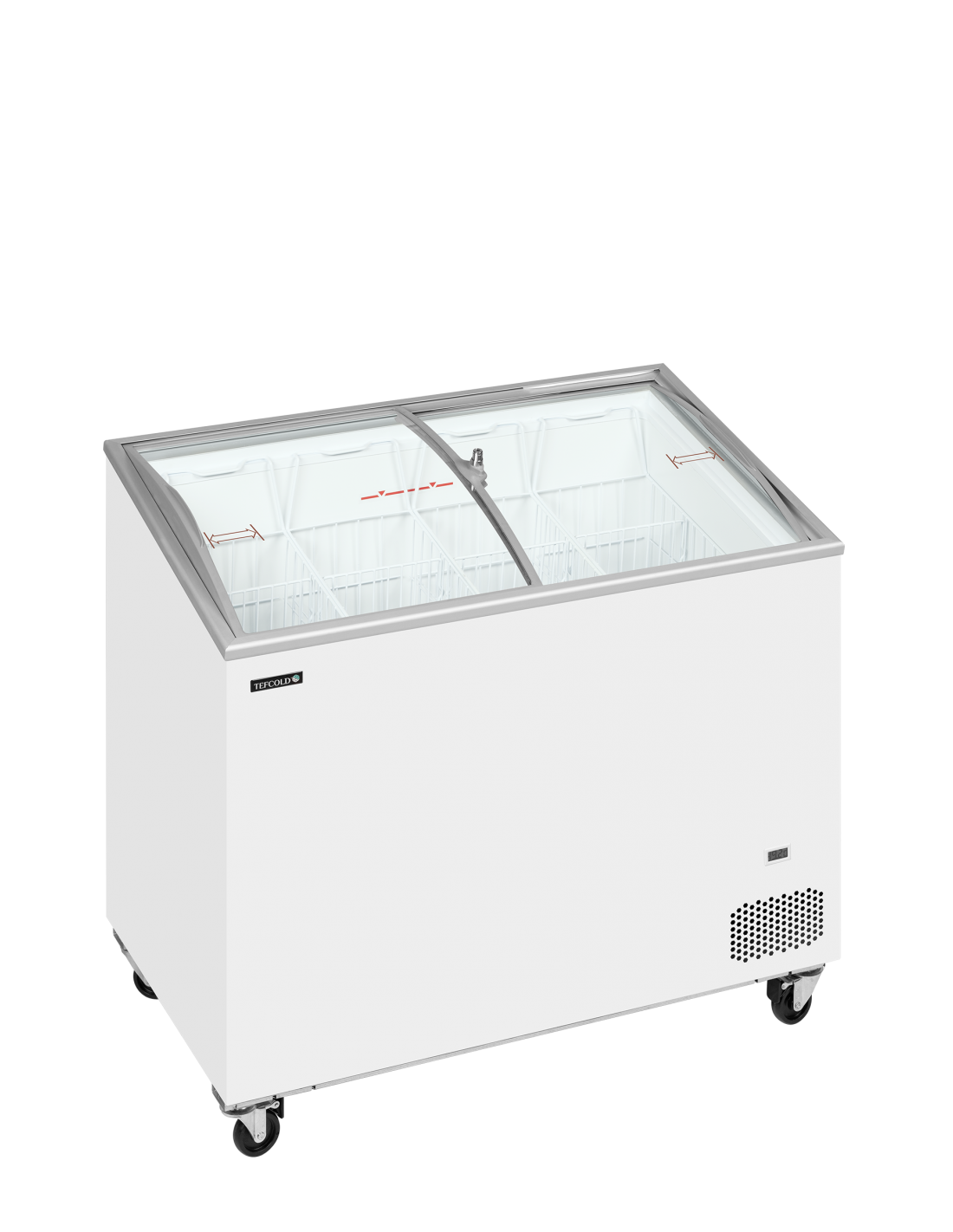 Ces modèles se distinguent par leurs couvercles vitrés bombés coulissants, qui offrent une visibilité supérieure sur les produits tout en apportant une présentation plus moderne et engageante. Leur forme incurvée met naturellement les glaces en valeur, tandis que le verrou intégré garantit une sécurité renforcée dans les environnements très fréquentés ou en libre‑service.