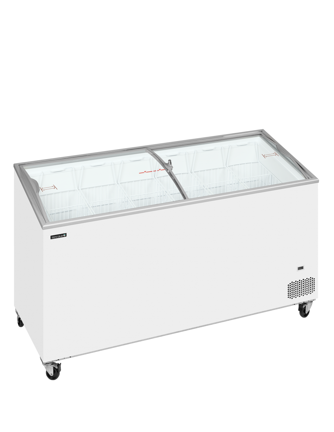Ces modèles se distinguent par leurs couvercles vitrés bombés coulissants, qui offrent une visibilité optimale sur les produits tout en apportant une présentation plus moderne et engageante. Leur forme incurvée met naturellement les glaces en valeur, tandis que le verrou intégré assure une sécurité renforcée dans les environnements très fréquentés ou en libre‑service.