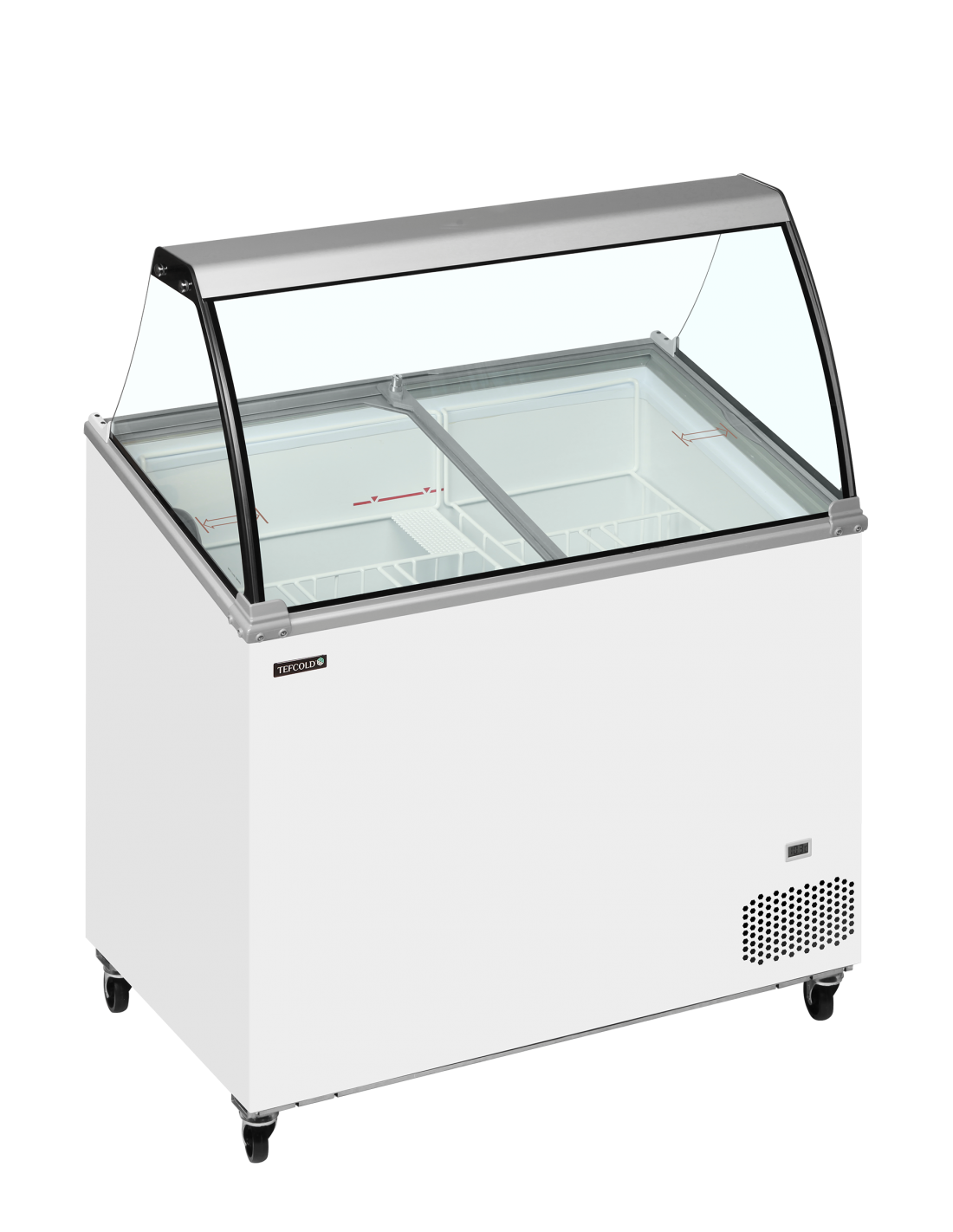 Optimisés pour accueillir des paniers adaptés aux bacs plastique de 5 litres, les modèles IC SCE‑SO disposent également d’un espace de rangement sous les paniers, pratique pour stocker des parfums supplémentaires ou organiser les réserves. Le pare‑haleine en verre incurvé améliore l’hygiène et la présentation, tout en offrant une visibilité claire et professionnelle sur les glaces.