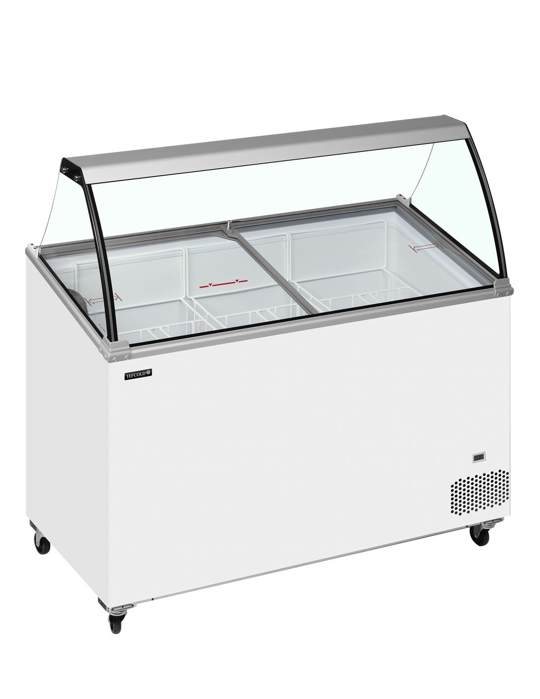 Optimisés pour accueillir des paniers adaptés aux bacs plastique de 5 litres, les modèles IC SCE‑SO disposent également d’un espace de rangement sous les paniers, pratique pour stocker des parfums supplémentaires ou organiser les réserves. Le pare‑haleine en verre incurvé améliore l’hygiène et la présentation, tout en offrant une visibilité claire et professionnelle sur les glaces.