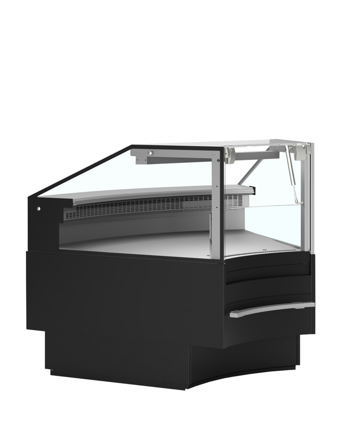 Avec sa finition noire élégante, ce module s’intègre parfaitement aux autres éléments de la gamme et apporte une continuité visuelle moderne et professionnelle. La façade vitrée anti‑buée garantit une visibilité optimale des produits, même en environnement humide ou en période d’affluence. Pour simplifier l’entretien, la vitre se relève entièrement, permettant un nettoyage rapide, sûr et efficace.