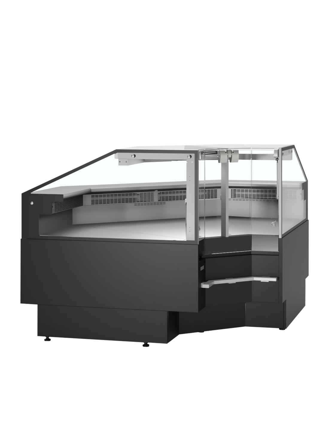 La façade vitrée anti‑buée garantit une excellente visibilité des produits en toutes circonstances. Pour simplifier l’entretien, la vitre se relève entièrement, permettant un nettoyage rapide, sûr et sans effort. L’éclairage LED supérieur met en valeur les produits avec une lumière claire et homogène, renforçant l’attractivité du comptoir.