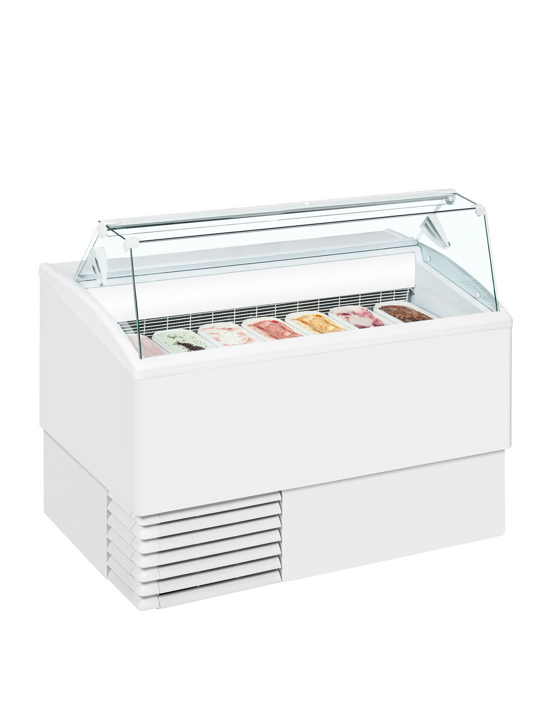 Disponible en trois tailles différentes, l’Isetta ST peut accueillir entre 4 et 7 bacs Napoli, ce qui permet d’adapter facilement votre offre selon la saison ou la fréquentation. Son verre frontal droit et son auvent en verre plat offrent une visibilité parfaite sur les produits, tandis que l’éclairage LED intérieur met en valeur les couleurs et les textures de vos glaces. Cette mise en scène soignée contribue à attirer l’attention des clients et à maximiser l’impact visuel de votre vitrine.